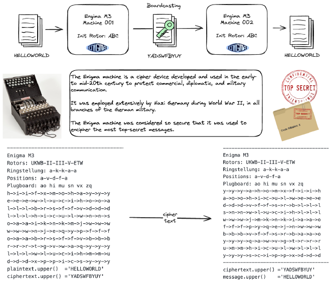 Take a step by step tutorial by notebook:Chapter_B_Enigma to develope a Enigma Machine in python.